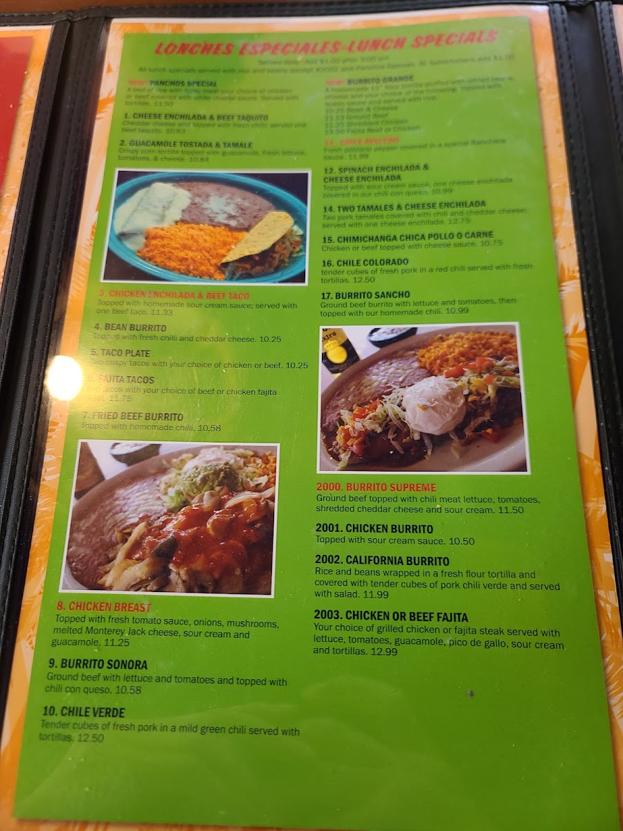 One tamale covered with chili and cheddar cheese, one cheese enchilada. With a choice of beef, cheese or chicken enchilada.